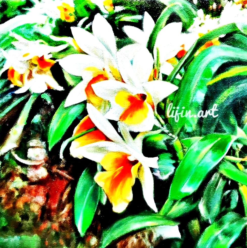 As a lady flower lover who loves to paint beautiful flowers, Teo Lay Hua, with decades of painting experience, has created a good numbers of exquisite works depicting beautiful orchids. The blooming flowers in her works are vividly charming that numerous art lovers and collectors were enchanted and obsessed.