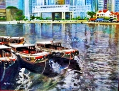 Lay Hua who specializes in creating beautiful landscape paintings, applied her skillful artistic technique for the creation of this new delightful impression of the Singapore River that can be seen on any fine windy day.